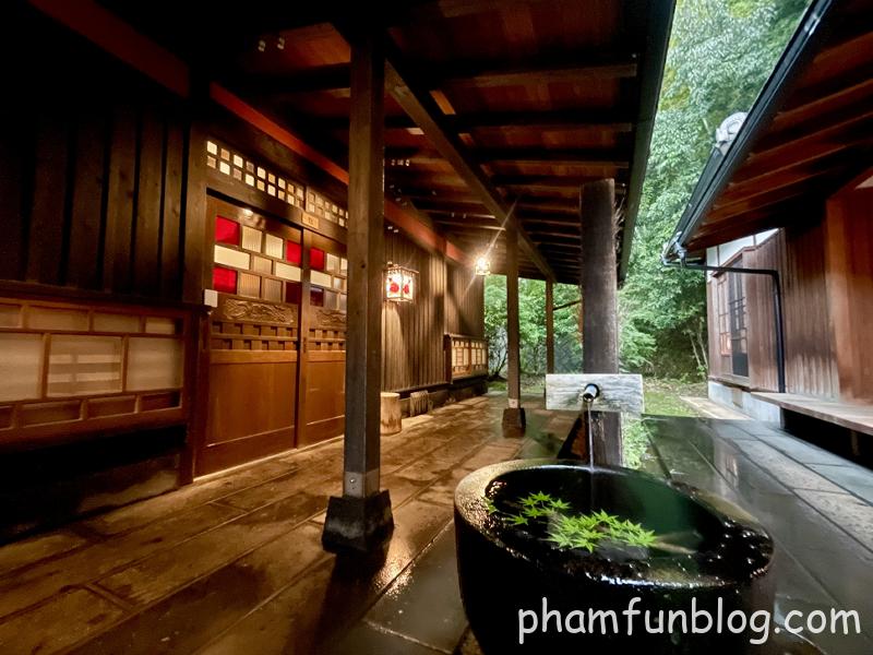 2間続きの長屋タイプの客室で、内風呂と露天風呂が付いています。