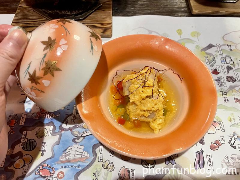 茶碗蒸しはとてもなめらかな食感で、ちょっと甘めの味付けでした。
