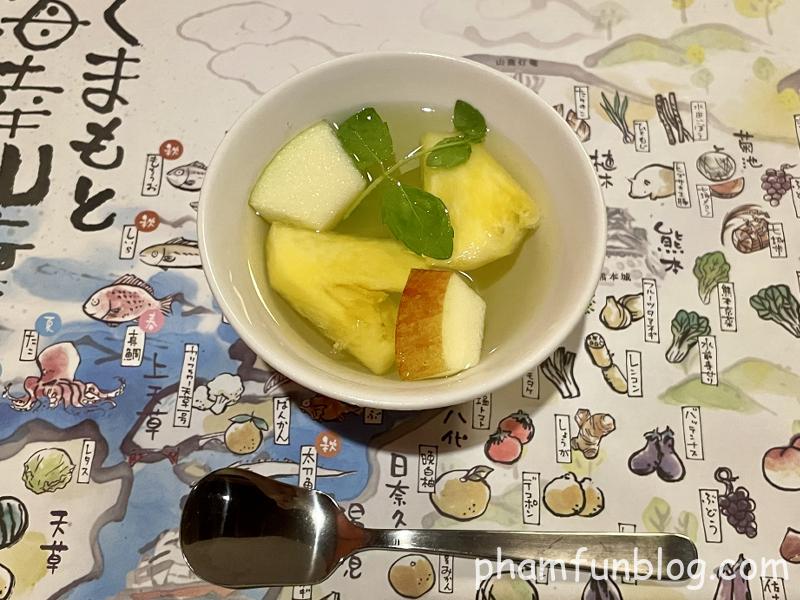 シャインマスカットやパイン、リンゴが甘いシロップに浸かっていて、フルーツポンチみたいな感じでした。