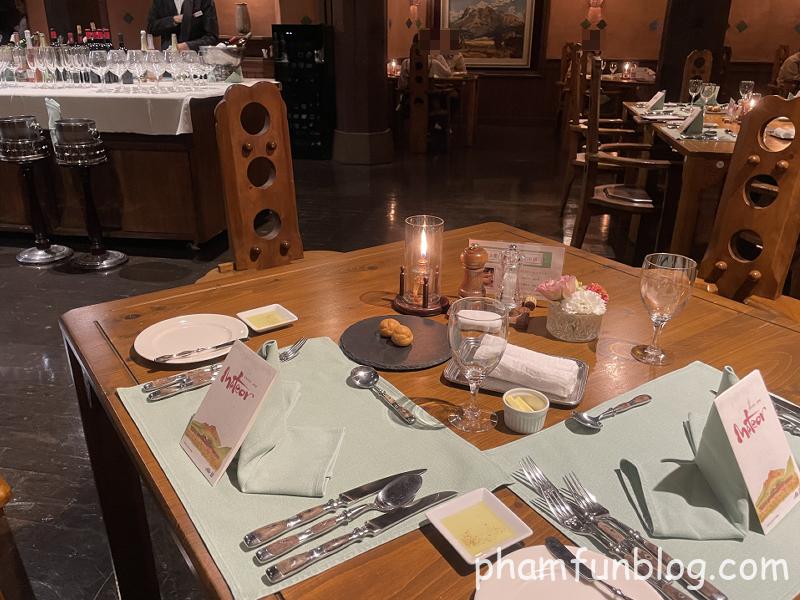 レストランは照明が抑えられ、キャンドルが焚かれてロマンチックな雰囲気でした。
