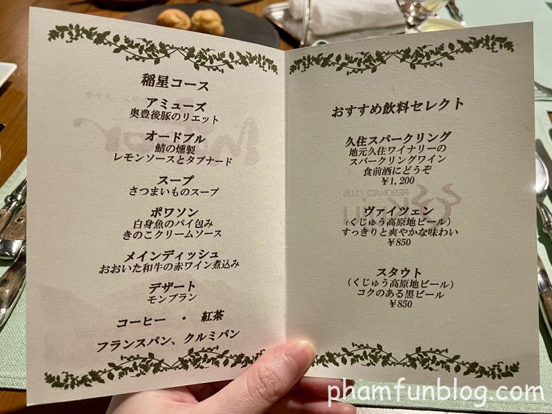 今回は、おおいた和牛の赤ワイン煮込みがメインの『稲星コース』をいただきました。