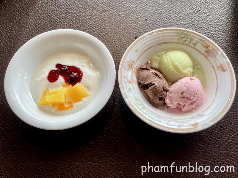 デザートはフルーツやアイスクリーム、ヨーグルトなどが用意されていました。